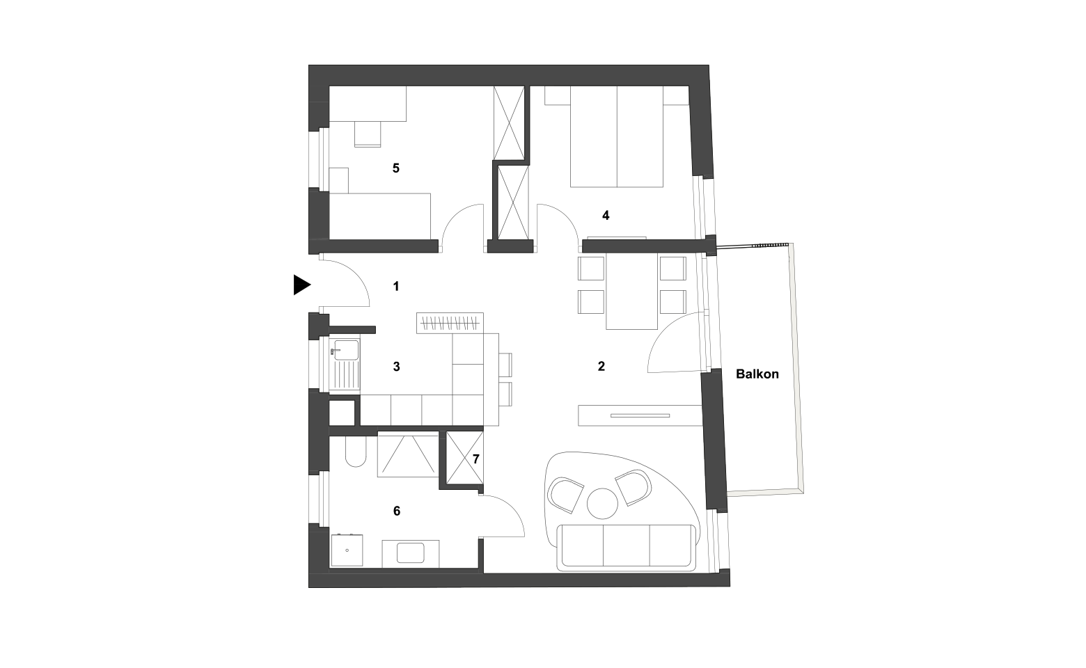 Schon beim Eintreten fühlt man sich willkommen: Der Vorraum öffnet sich in den großzügigen Wohnbereich, der durch seine Weite und Helligkeit besticht. Große Fenster sorgen für viel Tageslicht und schaffen eine angenehme, freundliche Atmosphäre. Von hier aus gelangen Sie direkt auf den Balkon, der an warmen Tagen den Wohnraum nach draußen erweitert – ideal für einen Kaffee am Morgen oder ein Glas Wein am Abend.